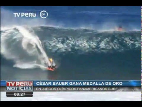 En los XI Juegos Panamericanos de Surf Open 2015, que se realizan en la playa Punta Rocas, el tablista nacional César Bauer conquistó la primera medalla de oro para nuestro país al llevarse la victoria de la categoría Bodyboard.