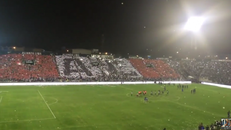 Previo al inicio del duelo entre Alianza Lima y el cuadro ecuatoriano del Emelec, la 'Noche Blanquiazul' de este año tuvo un especial detalle: los hinchas de la tribuna oriente formaron una bandera peruana con las letras AL en la parte blanca, hecha con carteles.