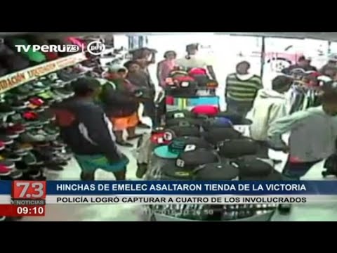 Cuatro hinchas del Emelec de Ecuador fueron detenidos por robar prendas de vestir de una tienda deportiva ubicada en la cuadra 11 de la avenida 28 de julio en el distrito de La Victoria.