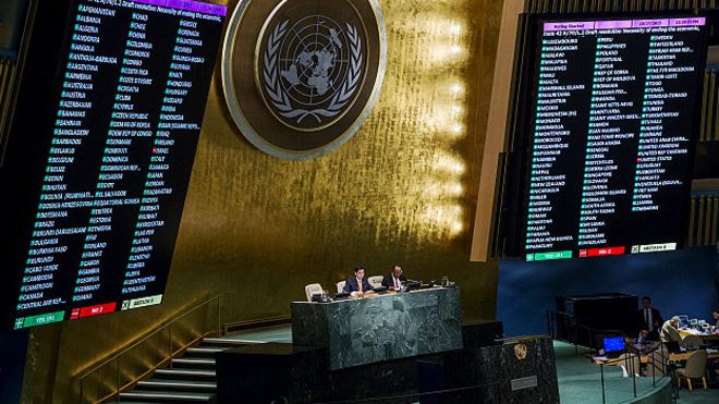 La Asamblea General de las Naciones Unidas aprobó una resolución que exige poner fin al bloqueo económico, comercial y financiero impuesto por Estados Unidos contra Cuba.