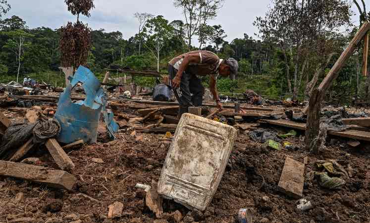 Un poblador busca sus pertenencias entre los escombros tras el lanzamiento de una bomba en la región de Lago Agrio, Ecuador. Foto: AFP.