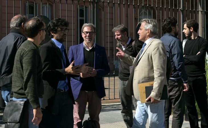 Periodistas frente a la Casa Rosada, luego de que el gobierno del presidente argentino Javier Milei prohibiera el acceso a la prensa. Foto: AFP.