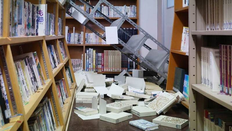 Estanterías derrumbadas en una escuela secundaria en la ciudad de Hachinohe (Aomori), el 9 de diciembre de 2025, luego de un terremoto de magnitud 7.5 en Japón. Foto: AFP (referencial).