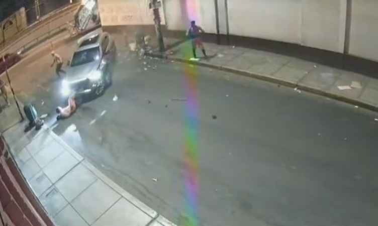 Cámaras de seguridad captaron el momento en que la camioneta se estrelló primero contra una pared y luego impactó contra tres operarios. Foto: TVPerú Noticias.