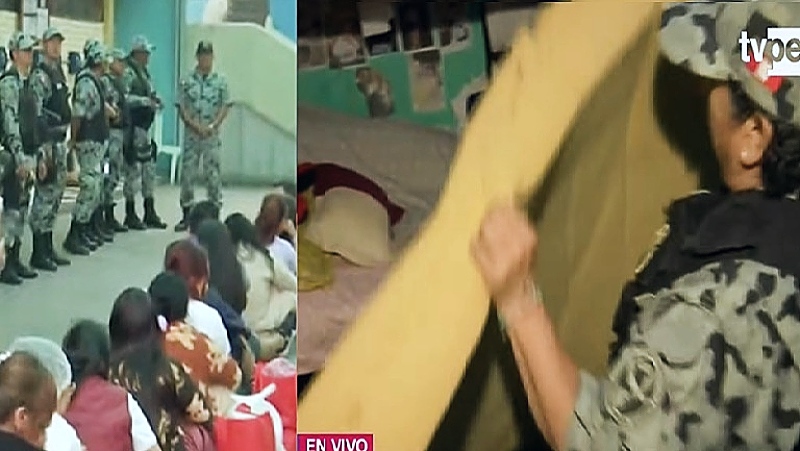 En el penal Santa Mónica de Chorrillos, agentes del Grupo de Operaciones Especiales (GOES) del INPE revisaron las celdas de las internas en busca de objetos ilícitos. Foto: captura de TVPerú Noticias.