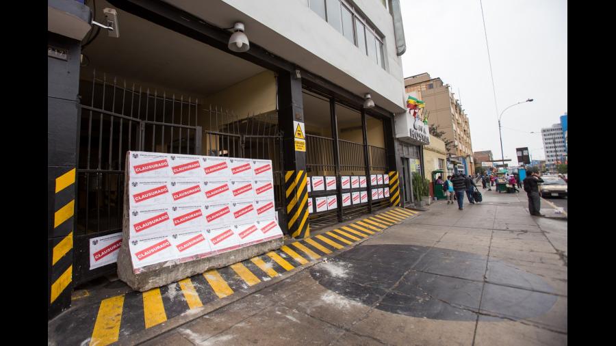 Luego, los inspectores se dirigieron al establecimiento de la empresa de transporte Mariscal Cáceres (Soyuz), en el jirón Montevideo 508, en donde colocaron muros de concreto para impedir que sea reabierto. Dicho lugar fue clausurado el pasado 21 de mayo, debido a que presentaba deficiencias en su infraestructura y sistema de seguridad; pero sus propietarios lo reabrieron, cometiendo desacato a la autoridad municipal.