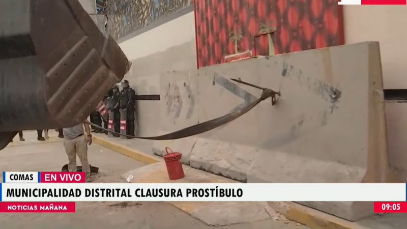 Este viernes, la Municipalidad de Comas clausuró y colocó muros de concreto en las puertas de un centro nocturno donde se ejercía la prostitución. El establecimiento se ubica en el pasaje La Bombonera, a la altura del kilómetro 4.5 de la avenida Chillón-Trapiche.