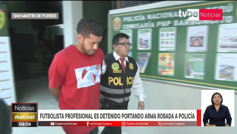 Futbolista profesional es detenido con arma robada a policía. Foto: captura TVPerú Noticias.