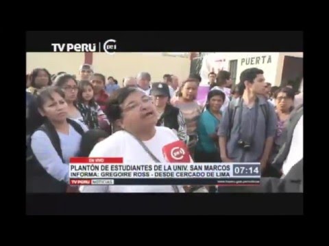 “Cotillo, la cárcel te espera”, “San Marcos se respeta”, “por una educación de calidad”, son algunos de los carteles que muestran los alumnos de dicha casa de estudios que se han instalado en la puerta número 4.