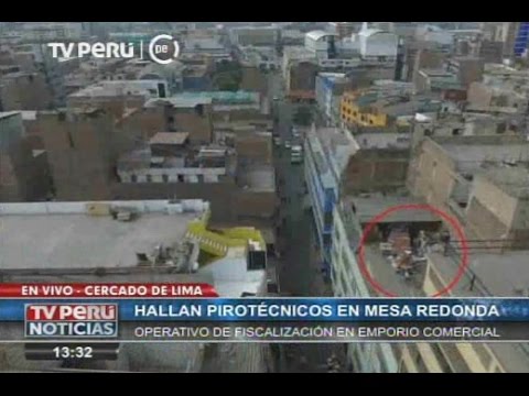 La Gerencia de Fiscalización y Control (GFC) de la Municipalidad Metropolitana de Lima (MML) intervino una de las tres galerías de Mesa Redonda donde se halló artículos pirotécnicos en las azoteas gracias a un dron.