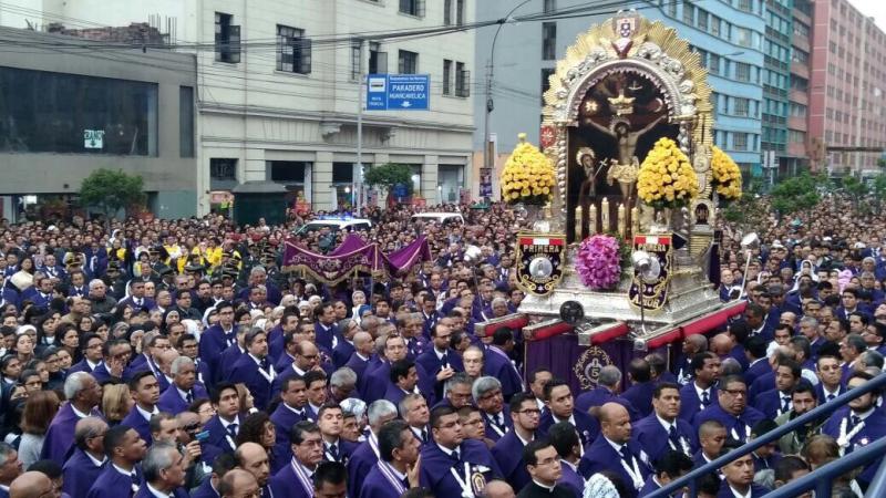 La sagrada imagen de Señor de los Milagros cumple su cuarto recorrido por el mes de octubre, luego de recibir el saludo de las principales autoridades del Estado en los anteriores recorridos.
