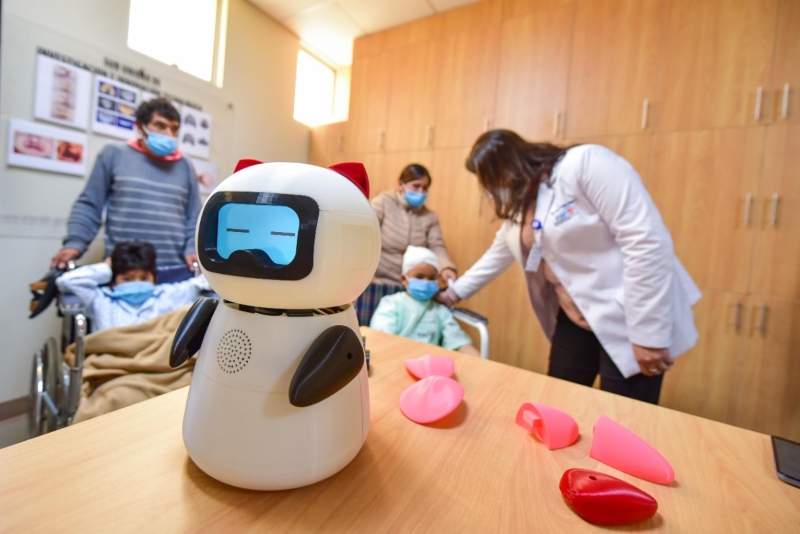 En el marco de un proyecto de investigación biomédica que incluye robótica, el Instituto Nacional de Salud del Niño (INSN) de San Borja en colaboración con la Pontificia Universidad Católica del Perú, viene impulsando un proyecto piloto denominado “Asistente robótico para el soporte emocional de los niños hospitalizados por quemaduras”.