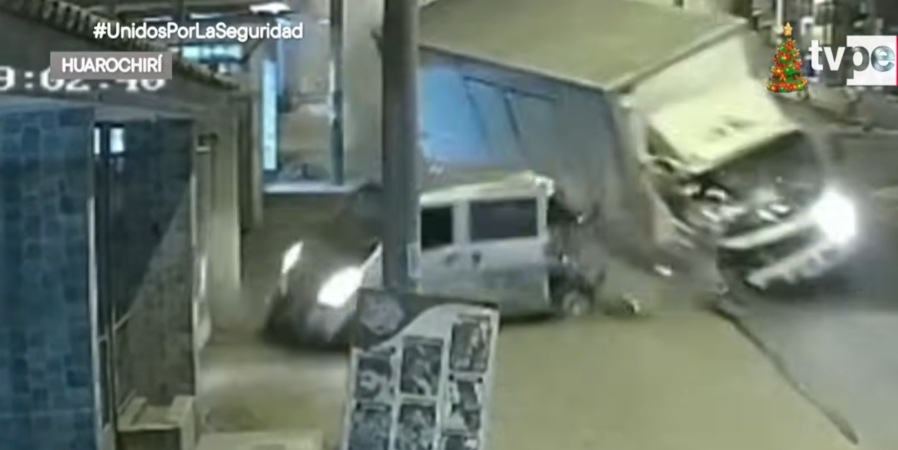 Cámaras de seguridad registraron el momento en que un camión furgón, fuera de control, impactó violentamente contra una camioneta tipo combi. Tras el primer choque, el furgón colisionó con una miniván que trasladaba a una familia y finalmente terminó estrellándose contra un poste de alumbrado público.