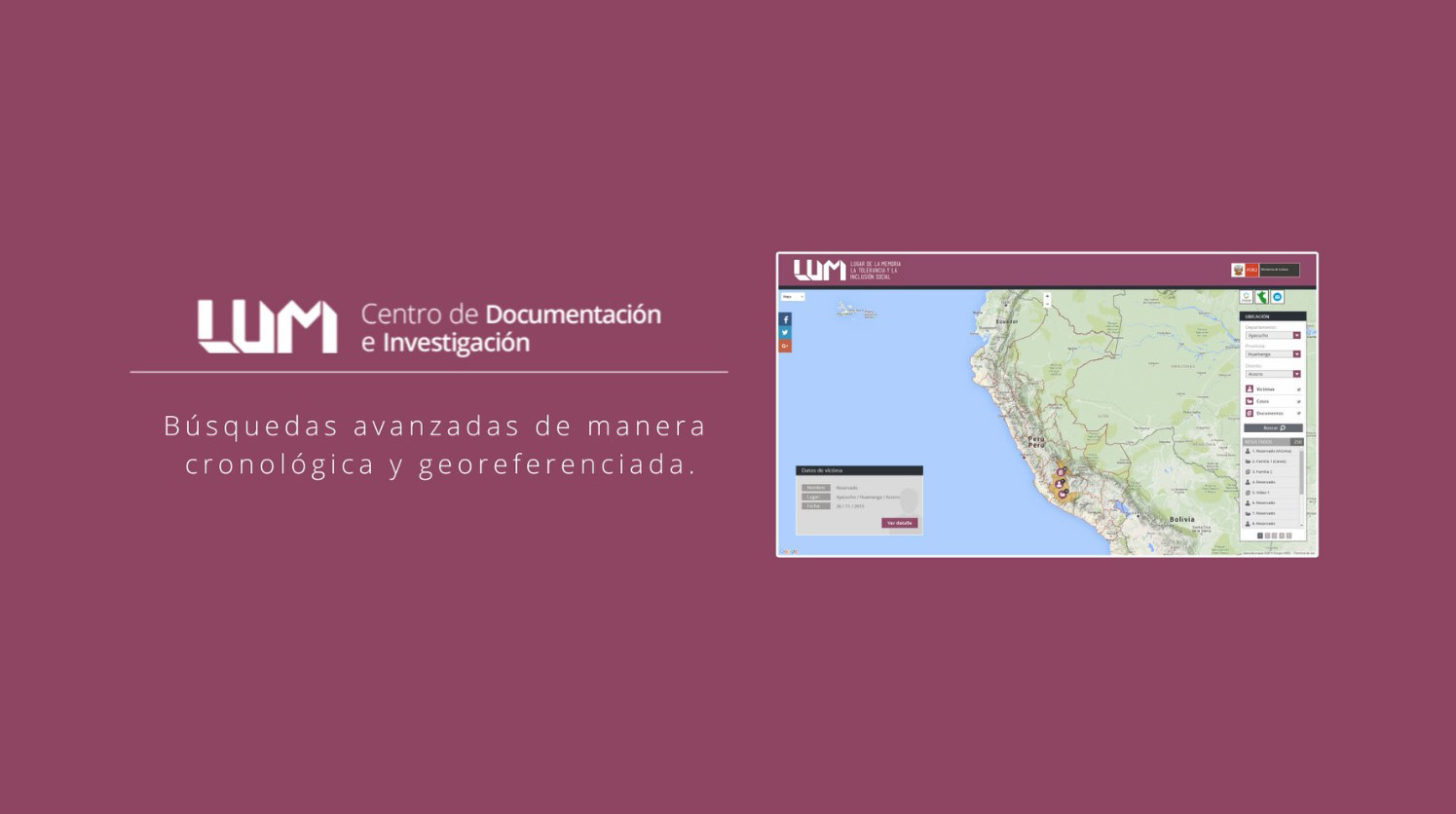 La plataforma, ubicada en el portal institucional del LUM, contiene el material proveniente de la Comisión de la Verdad y Reconciliación (CVR), donado por la Defensoría del Pueblo. Se trata de 11,448 archivos de testimonios orales, 3,813 videos de noticias publicadas en televisión y los videos de las Audiencias Públicas realizadas por este grupo de trabajo.