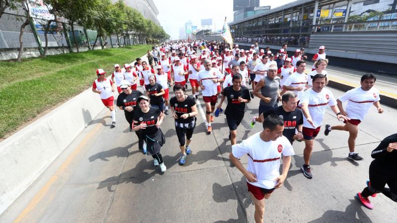 El acto deportivo se inició en la Plaza Bolognesi, desde donde se realizó una caminata por la avenida Paseo Colón hasta la Plaza Grau y se bordeó todo el Paseo de los Héroes Navales hasta llegar nuevamente a la Plaza Grau.