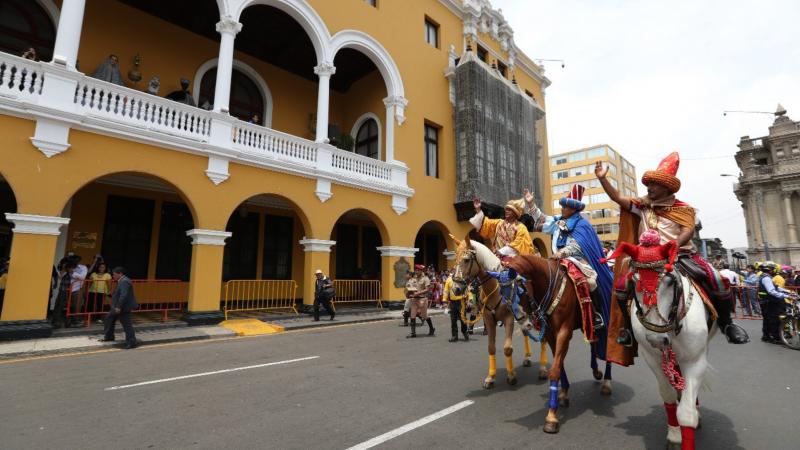 Representados por agentes de la Policía Montada, previamente los Reyes Magos llegaron montados a caballo a la Plaza de Armas por el Jr. Junín, rodeando la céntrica plaza para ingresar por la puerta principal al Palacio Municipal ante la admiración de vecinos y turistas.