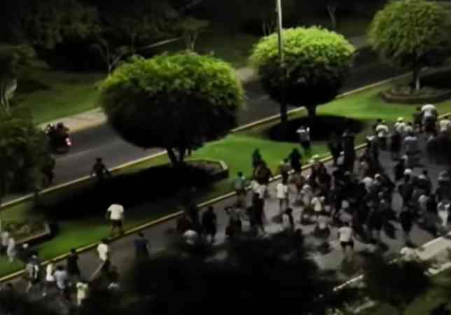 Presuntos barristas de Sporting Cristal y Sport Boys protagonizaron enfrentamientos en las inmediaciones del estadio Miguel Grau, en el Callao. Foto: TVPerú Noticias.