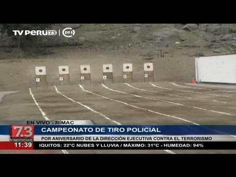 Se desarrolla un campeonato de tiro policial como parte de las celebraciones del aniversario de la Dirección Ejecutiva contra el Terrorismo (Dircote) de la Policía Nacional del Perú (PNP).