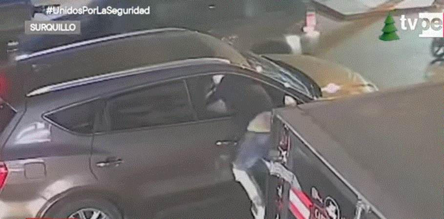 En una de las imágenes grabadas por la Policía, se observa cómo uno de ellos se abalanza sobre el pasajero de un taxi. Foto: TVPerú Noticias.
