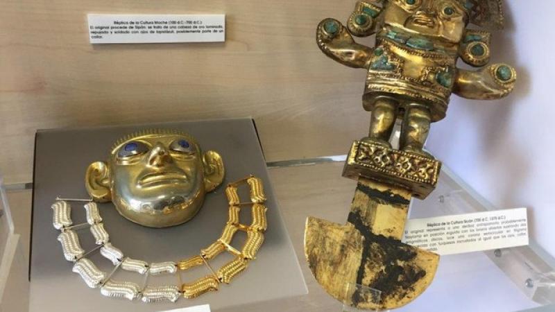 En la Biblioteca del Ministerio de Cultura, ubicada en el distrito de San Borja, se viene presentando la muestra temporal “Recreación del arte metalúrgico de las culturas prehispánicas”, que consta de réplicas de ornamentos de orfebrería precolombina, exhibidas en los diferentes museos de nuestro país.