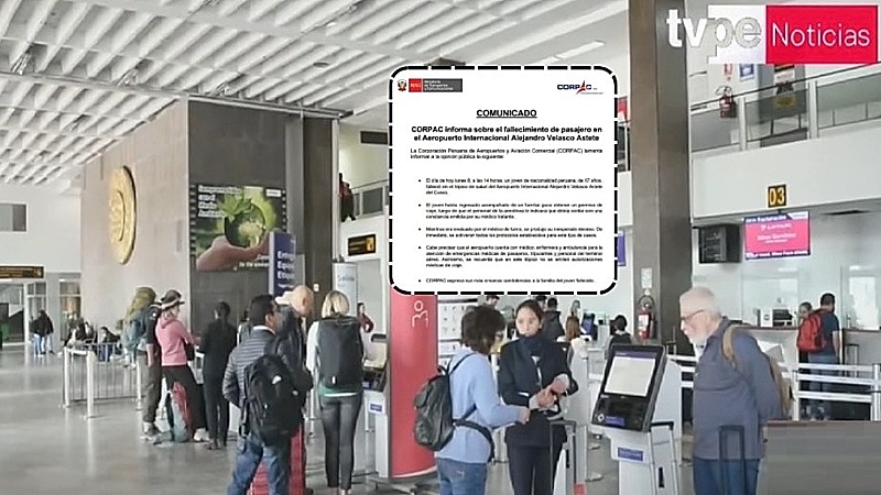 Adolescente, de 17 años y de nacionalidad peruana, falleció este lunes a las 14:00 p. m. en el tópico de salud del Aeropuerto Internacional Alejandro Velasco Astete del Cusco, informó la Corporación Peruana de Aeropuertos y Aviación Comercial (Corpac).