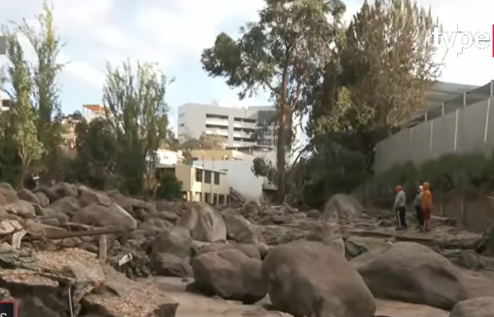 El sector de Flora Tristán luce cubierto de grandes rocas que dañaron el puente que conecta los distritos de Yanahuara y Cerro Colorado. Foto: TVPerú Noticias.
