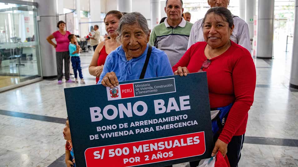 El Ministerio de Vivienda, Construcción y Saneamiento (MVCS) entrega el Bono de Arrendamiento de Vivienda para Emergencias (BAE) para aquellas familias cuyas viviendas resultaron afectadas ante una situación de emergencia. Esto permite a los ciudadanos alquilar un espacio seguro mientras se desarrolla una solución de vivienda definitiva.