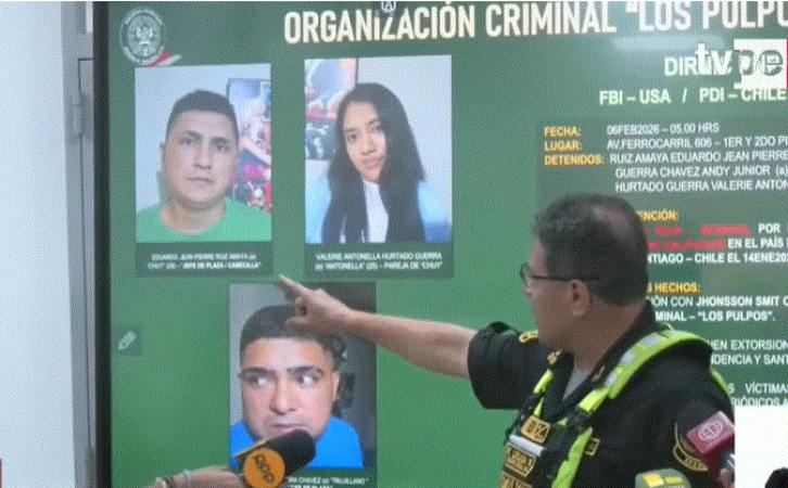 La Policía Nacional, en un trabajo coordinado con su par de Chile, capturó en una vivienda de la ciudad de Barranca a tres integrantes de la organización criminal Los Pulpos. Se trata de Eduardo Jean Pierre Ruiz Amaya (28), alias Chuy; su pareja, Valerie Antonella Hurtado Guerra (25); y Andy Junior Guerra Chávez (29), alias Trujillano.
