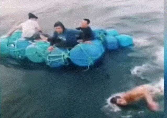Tras el colapso de la embarcación, algunos cayeron al mar y permanecieron flotando, mientras que otros se aferraron a cilindros de plástico.