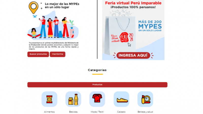 Con el propósito de mitigar los casos de COVID-19 en el país, el Ministerio de la Producción lanzó la Feria Virtual “PERÚ IMPARABLE 2021”, que permitirá poner en vitrina los productos y servicios de 200 MYPES de todo el país, en el rubro de alimentos, bebidas, ropa, calzado, artesanías, joyería, decoración, cosmética natural y otros.
