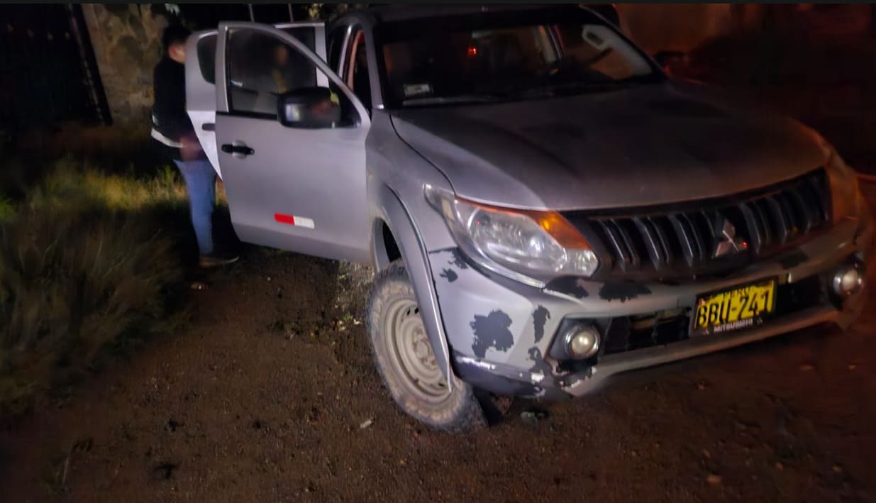 Como parte del operativo, los agentes intervinieron inicialmente un vehículo que cumplía funciones de “liebre” o avanzada, en el que se encontraban dos personas. Foto: PNP.