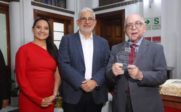El exministro de Cultura, Alfredo Luna; y la jefa del Instituto Nacional de Radio y Televisión del Perú (IRTP), Cinthia Ramírez, hicieron un reconocimiento en enero de este año al destacado periodista José María “Chema” Salcedo, en merito a su destacada y amplia trayectoria en nuestro país.