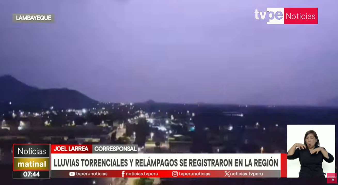 En Pítipo, Batán Grande, Chongoyape y Tumán se reportaron lluvias con descargas eléctricas durante la noche. En la ciudad de Chiclayo, las precipitaciones fueron de moderada intensidad.