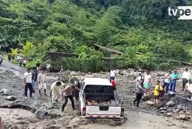 La carretera Santa Rosa-Llochegua quedó totalmente colapsada tras la caída de un huaico. Foto:TVPerú Noticias.