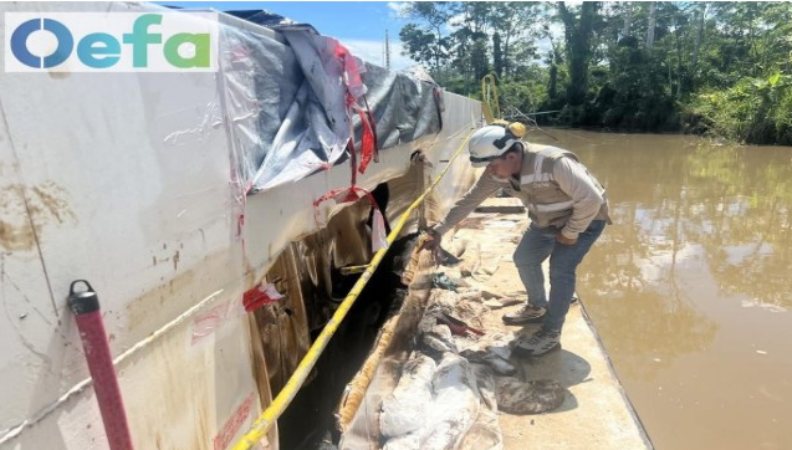 El Organismo de Evaluación y Fiscalización Ambiental (OEFA) continúa supervisando el derrame de petróleo registrado en el río Amazonas, a la altura de la comunidad de San Salvador, en la región Loreto, tras el encallamiento y colisión de un convoy fluvial, el pasado 10 de abril.