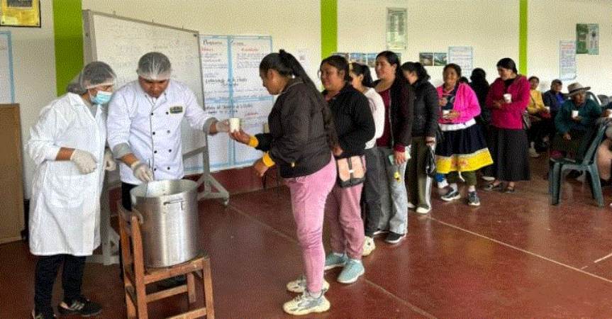 A fin de fortalecer la Educación Alimentaria Nutricional, en la Institución Educativa Santo Toribio, ubicada a 3800 metros sobre el nivel del mar, en el distrito de Tayabamba, provincia de Pataz, se realizó una sesión demostrativa, en la cual madres y padres de familia fueron capacitados en la práctica de hábitos alimenticios saludables, nutrición, uso y manipulación adecuada de los alimentos que son entregados por el programa del Midis.