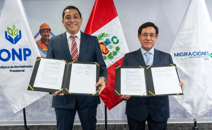 La Superintendencia Nacional de Migraciones y la Oficina de Normalización Provisional (ONP) suscribieron un convenio de colaboración interinstitucional que permitirá compartir información sobre los pensionistas extranjeros y realizar acciones de capacitación y asistencia técnica en el marco de sus competencias.
