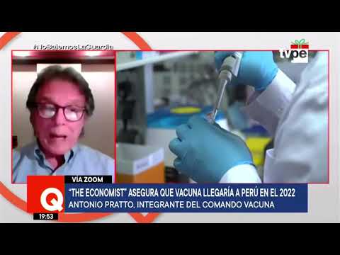 El integrante del Comando Vacuna, Antonio Pratto, aclaró que la llegada al Perú de la vacuna contra el COVID-19 estará "ampliamente disponible" en el 2022. Eso es lo que al parecer ha querido decir The Economist, agregó.