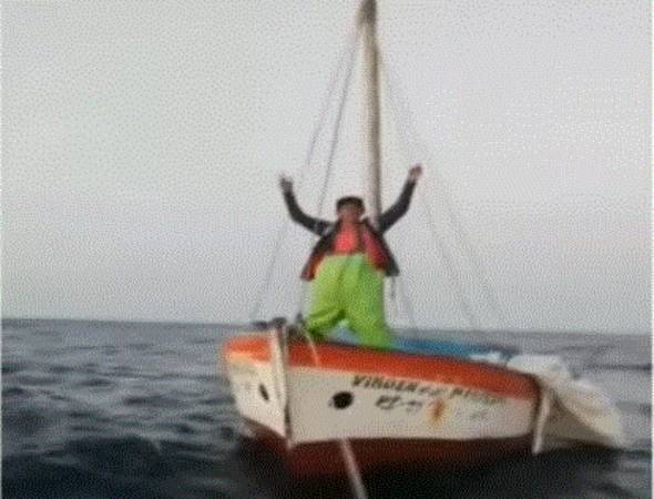 El pescador Melesio Teque Querevalú, de 64 años, al momento de ser encontrado en altamar. Foto: TVPerú Noticias.