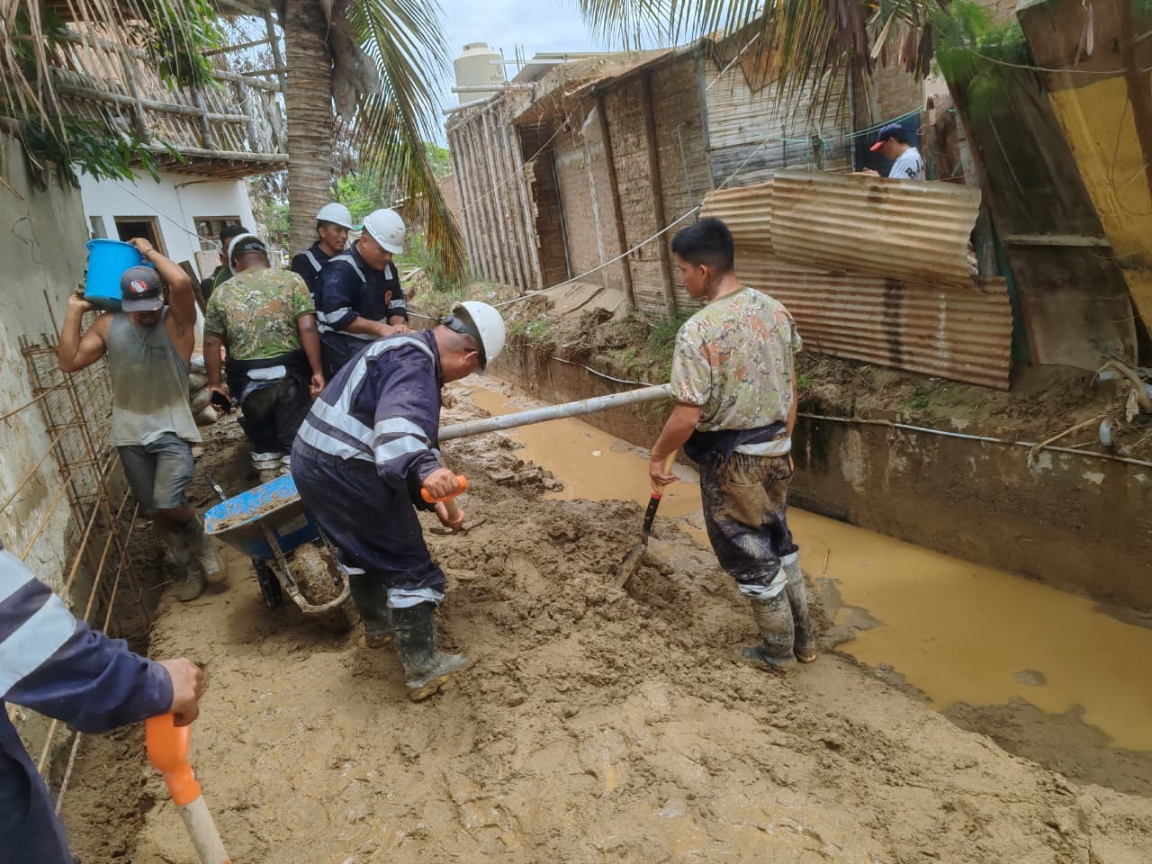 Durante la jornada de este sábado 7 de marzo, un total de 65 efectivos realizaron trabajos de limpieza y rehabilitación en zonas afectadas. Las acciones incluyeron la remoción de barro y sedimentos acumulados en calles, veredas y cunetas, así como el apoyo directo a familias damnificadas, contribuyendo a restablecer las condiciones de seguridad y salubridad en la localidad.