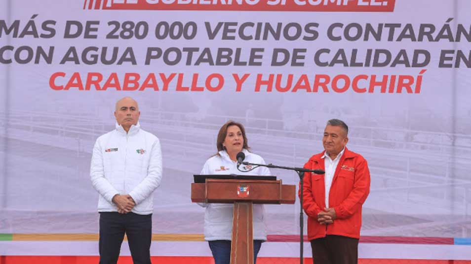 La presidenta de la república, Dina Boluarte Zegarra, inició hoy el proyecto Esquema Integral Carabayllo, que otorgará acceso a redes de agua potable y alcantarillado a más de 280 000 vecinos de Lima norte.