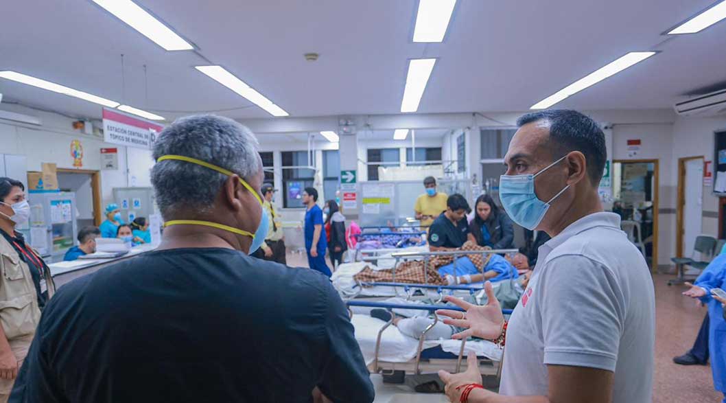 El primer establecimiento visitado fue el Hospital Nacional Edgardo Rebagliati Martins, ubicado en el distrito de Jesús María, donde el presidente constató la saturación del área de Emergencias y las condiciones en las que se brinda la atención.