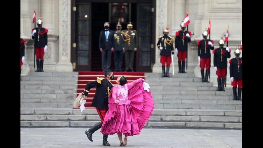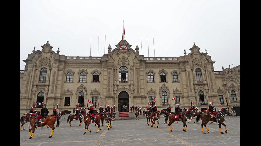 El jefe de Estado, Francisco Sagasti, presidió el tradicional Cambio de Guardia por el mes patrio en el Patio de Honor de Palacio de Gobierno, a cargo del regimiento de caballería, Mariscal Domingo Nieto.