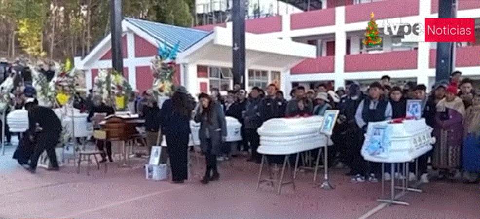 Cargando los féretros, familiares, amigos y pobladores de Huancané, en Puno, recorrieron las calles de la ciudad para exigir justicia por los estudiantes que murieron calcinados en un restaurante clandestino. Luego, los cuerpos fueron llevados a la sede del Instituto Superior Pedagógico, donde se les rindió un sentido homenaje.