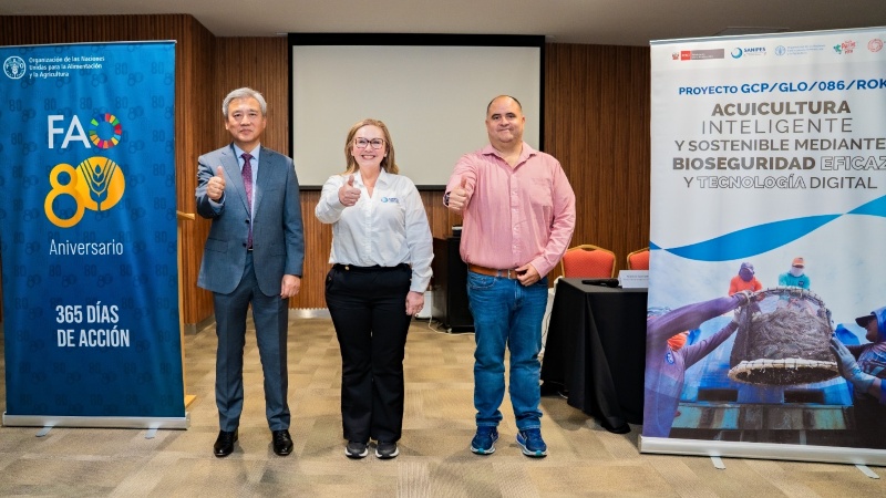 Durante la actividad, también se presentaron los resultados del proyecto “Acuicultura Inteligente y Sostenible mediante Bioseguridad Eficaz y Tecnología Digital” (Proyecto SAB), iniciativa que permitió consolidar la cooperación entre Perú, Corea del Sur y la FAO en favor de una acuicultura más innovadora, sostenible y resiliente.