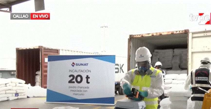 Un contenedor con mercurio de contrabando, que había sido declarado como 20 toneladas de piedra chancada, fue incautado por la Superintendencia Nacional de Aduanas y de Administración Tributaria (Sunat).
