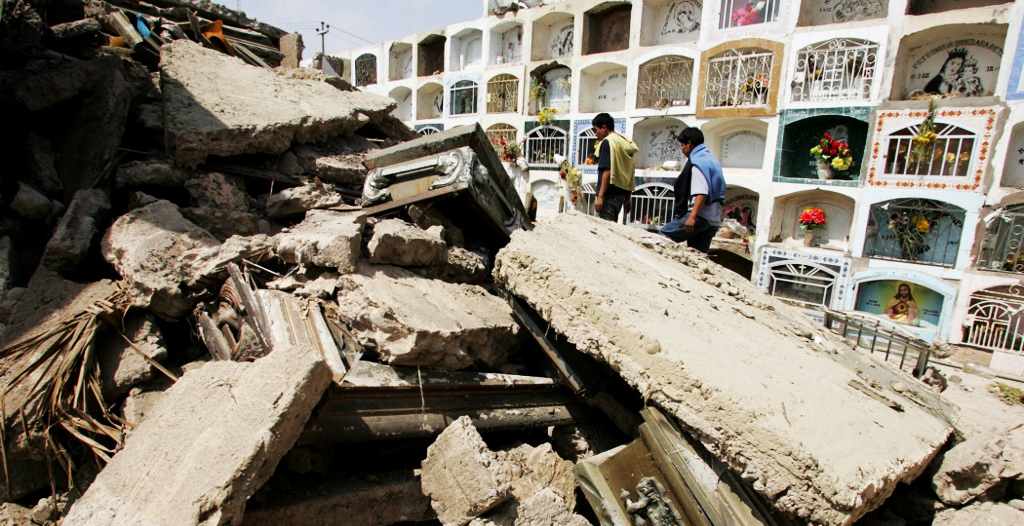 Cementerio de Pisco destruido tras fuerte terremoto del 2007. Foto: AFP.