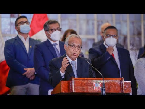 El jefe del Gabinete Ministerial, Aníbal Torres, acompañado de ministros de Estado, brindó esta tarde una conferencia de prensa, donde se pronunció sobre la reunión que sostuvo la titular del Congreso, María del Carmen Alva, con otros legisladores.