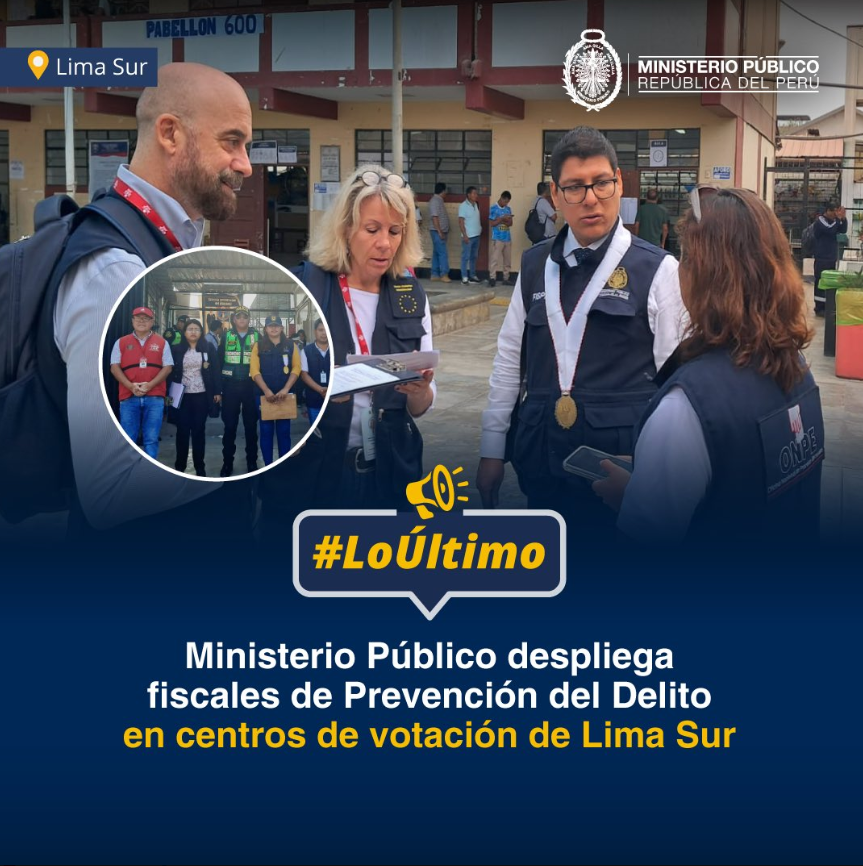 El Ministerio Público informó que los equipos de la Fiscalía en Prevención del Delito (FISPREV) se encuentran desplegados en los 13 locales de votación, ubicados en distritos de Lima sur, donde no se llegó a instalar las mesas de sufragio por la falta de distribución del material electoral.