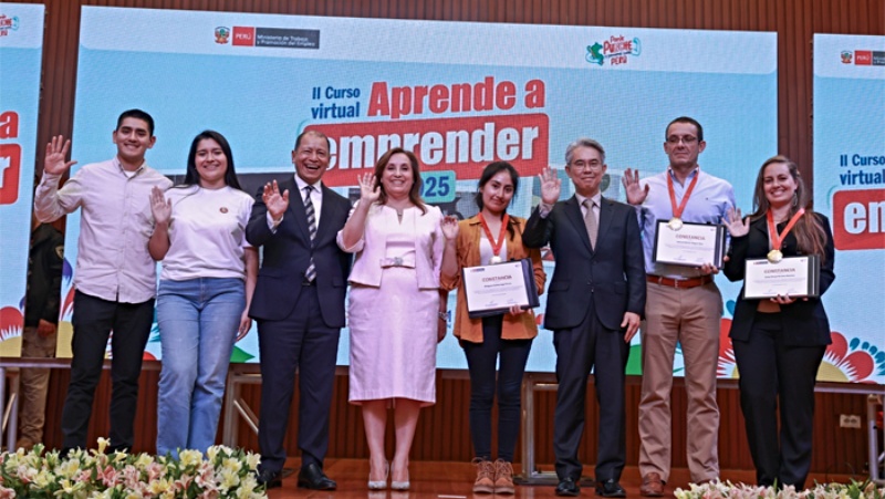 “Para los jóvenes y emprendedores, desde el Ministerio de Trabajo contamos con la plataforma CAPACÍTA-T, Mi Carrera, y ahora también con ‘Aprende a Emprender’. Asimismo, tenemos una plataforma dirigida a los peruanos y peruanas que aún trabajan en la informalidad. Estamos dando pasos firmes para que puedan transitar hacia la formalidad y ubicar a nuestro país en el orden que corresponde”, expresó.